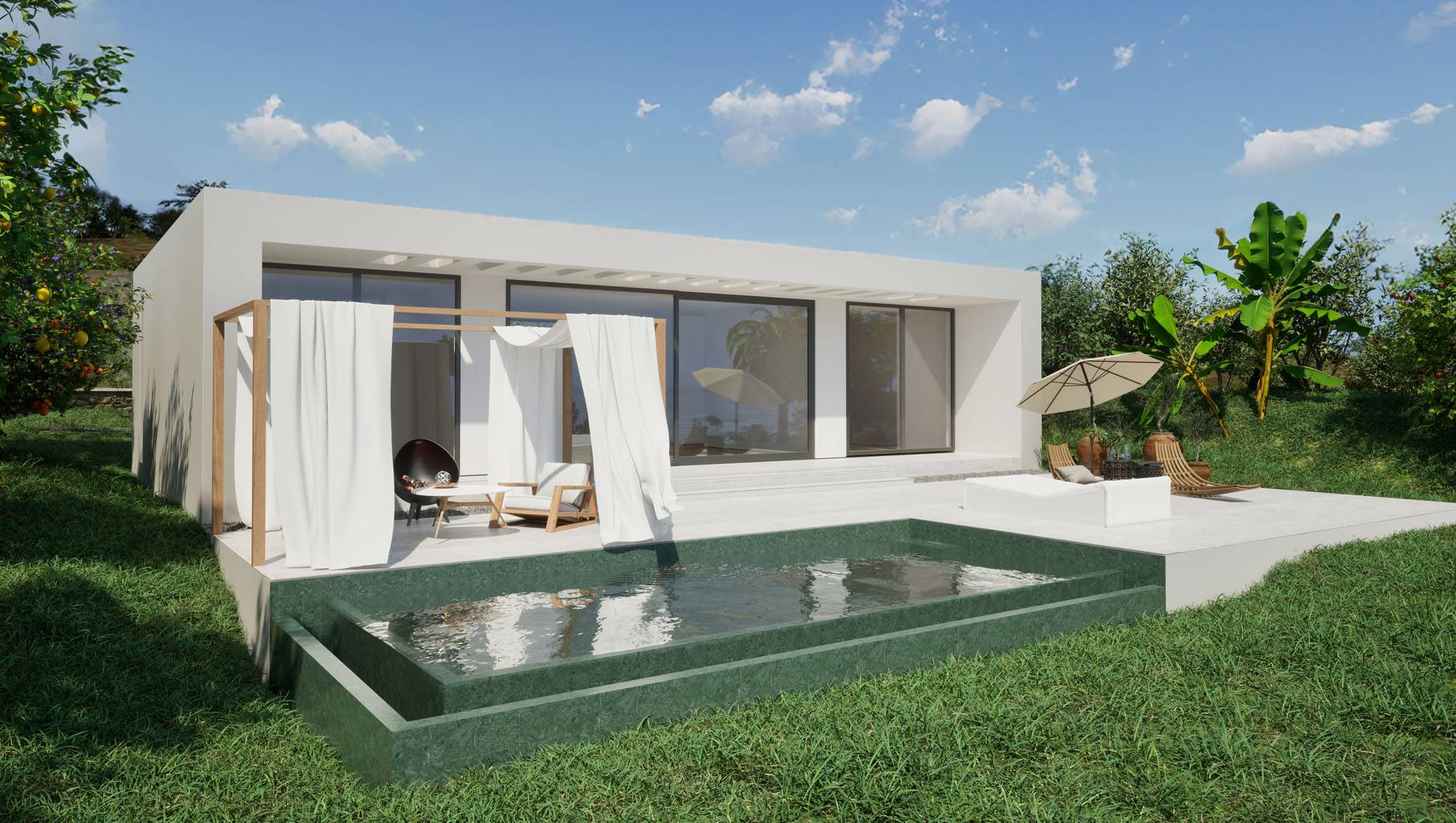 Der eigene beheizbare Pool jeder Einheit lädt zum Entspannen ein – ganzjährig.